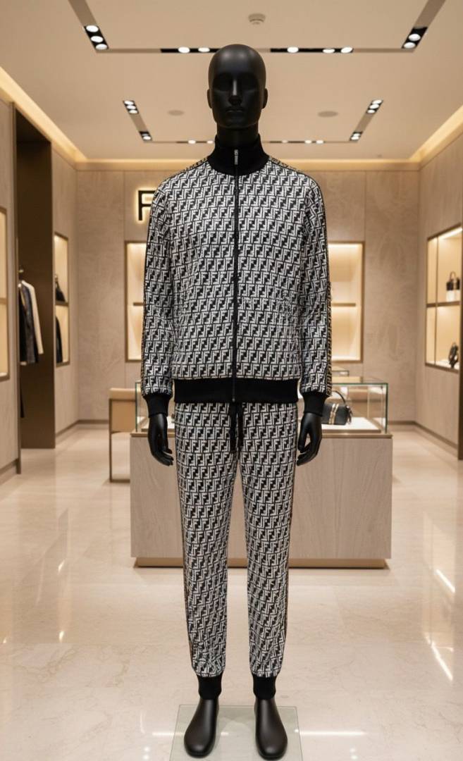 Fend i Imported Black Monogram Printed Super Premium Track Suit F3296-BL
