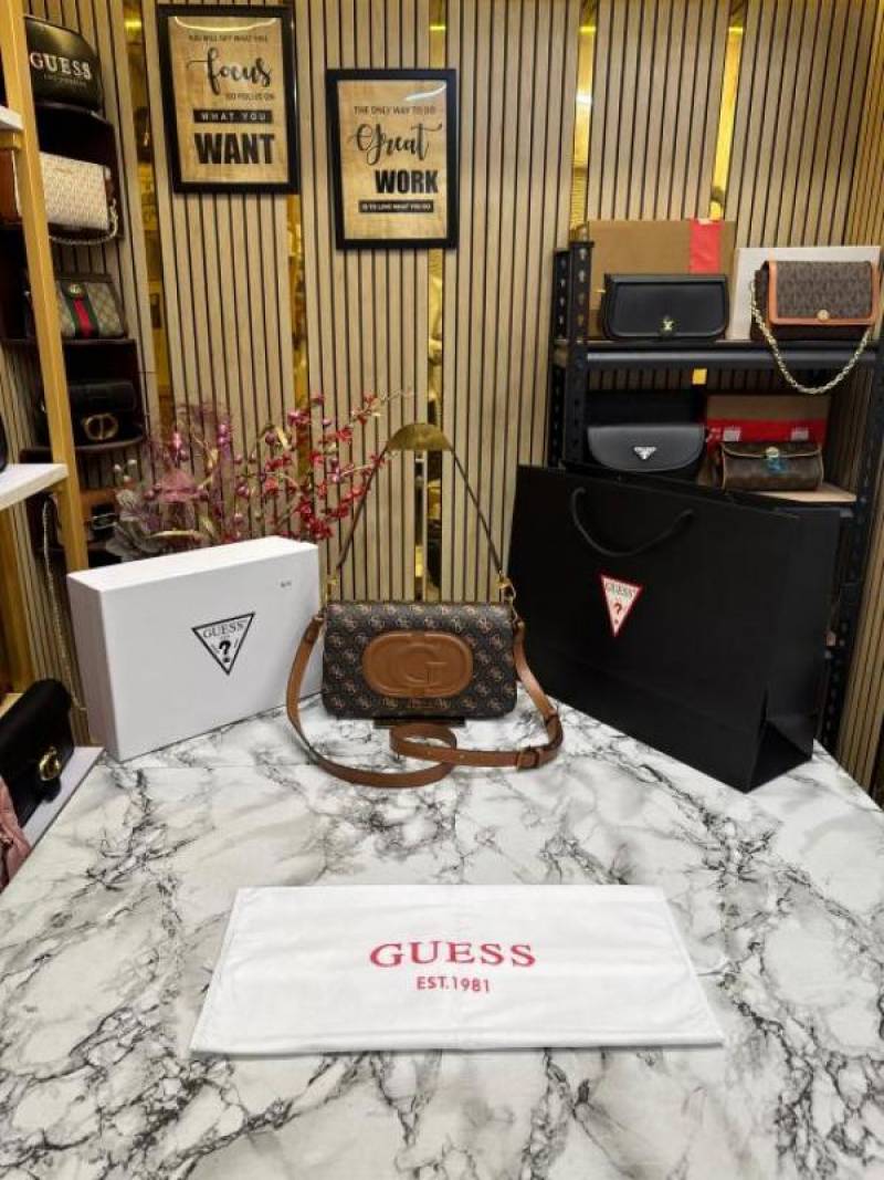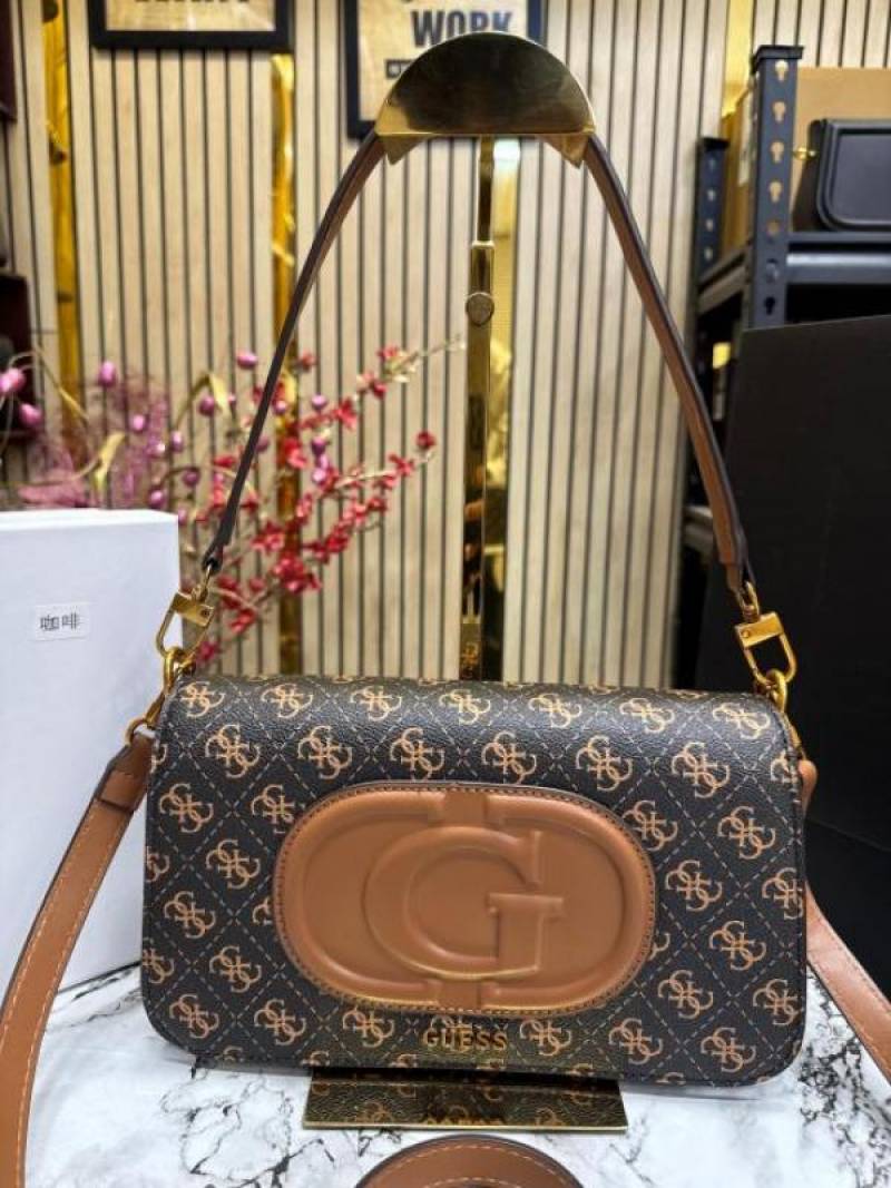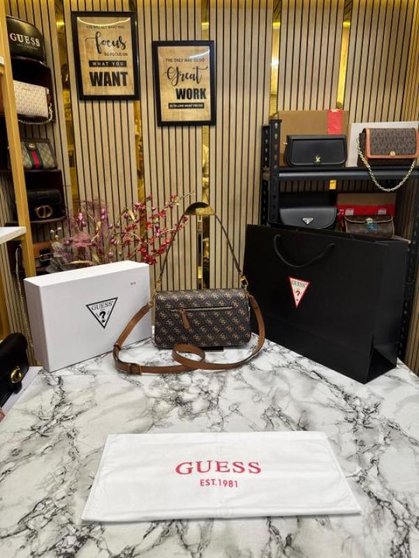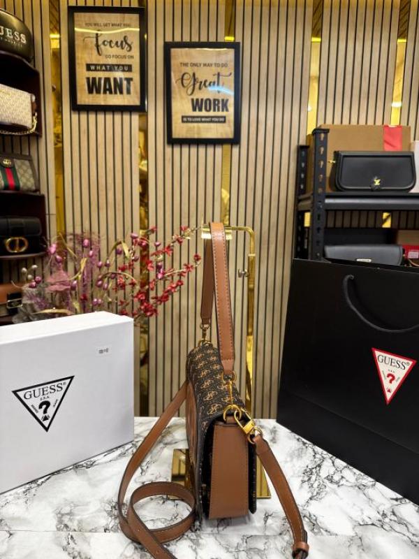 Guess Womens Eco Mietta Flap Shoulder Bag with box and dust bag including carry bag (Brown)