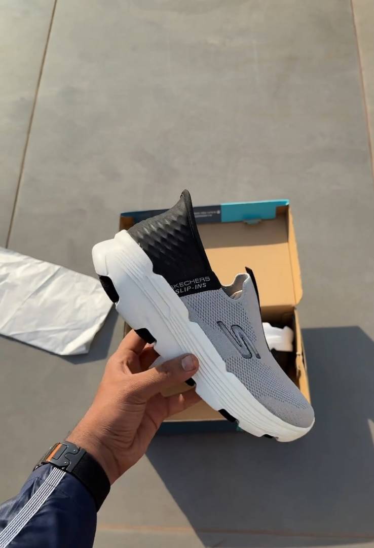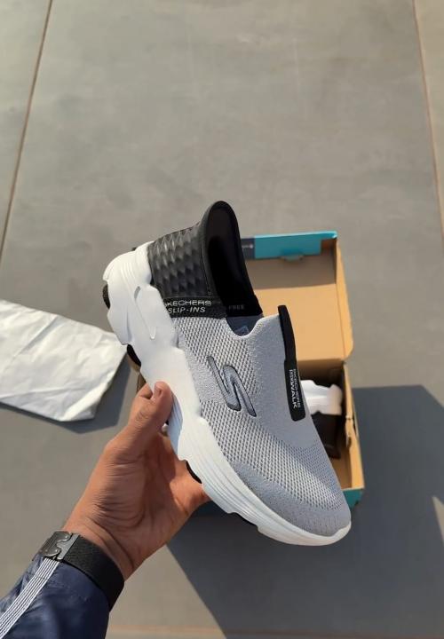 SKECHER S SLIP-INS MAX CUSHIONING GREY WHITE